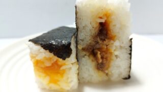 【商品紹介】ファミリーマートの今週の新商品「ぼんご監修 ごちむすび 牛そぼろと卵黄ソース」を食べてみました。ふっくらマシ...