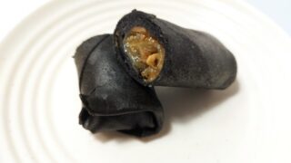 【商品紹介】セブンイレブンの今週の新商品「黒いすき焼き春巻」を食べてみました。贅沢な牛すき焼きの具材を直火釜で炒め、パリ...