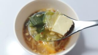 【商品紹介】セブンイレブンの商品「水菜と豚肉のはりはりスープ」を食べてみました。豚肉を加えたかつおだしに、水菜を入れた関...