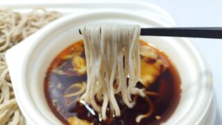 【商品紹介】ファミリーマートの今週の新商品「【関東の一部・関西】温かいつけ汁につけて食べる ラー油豚肉つけそば」を食べて...