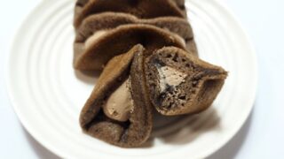 【商品紹介】ファミリーマートの商品「マーブル蒸しケーキ(チョコ)3個入」を食べてみました。表面をマーブル模様にした、チョ...